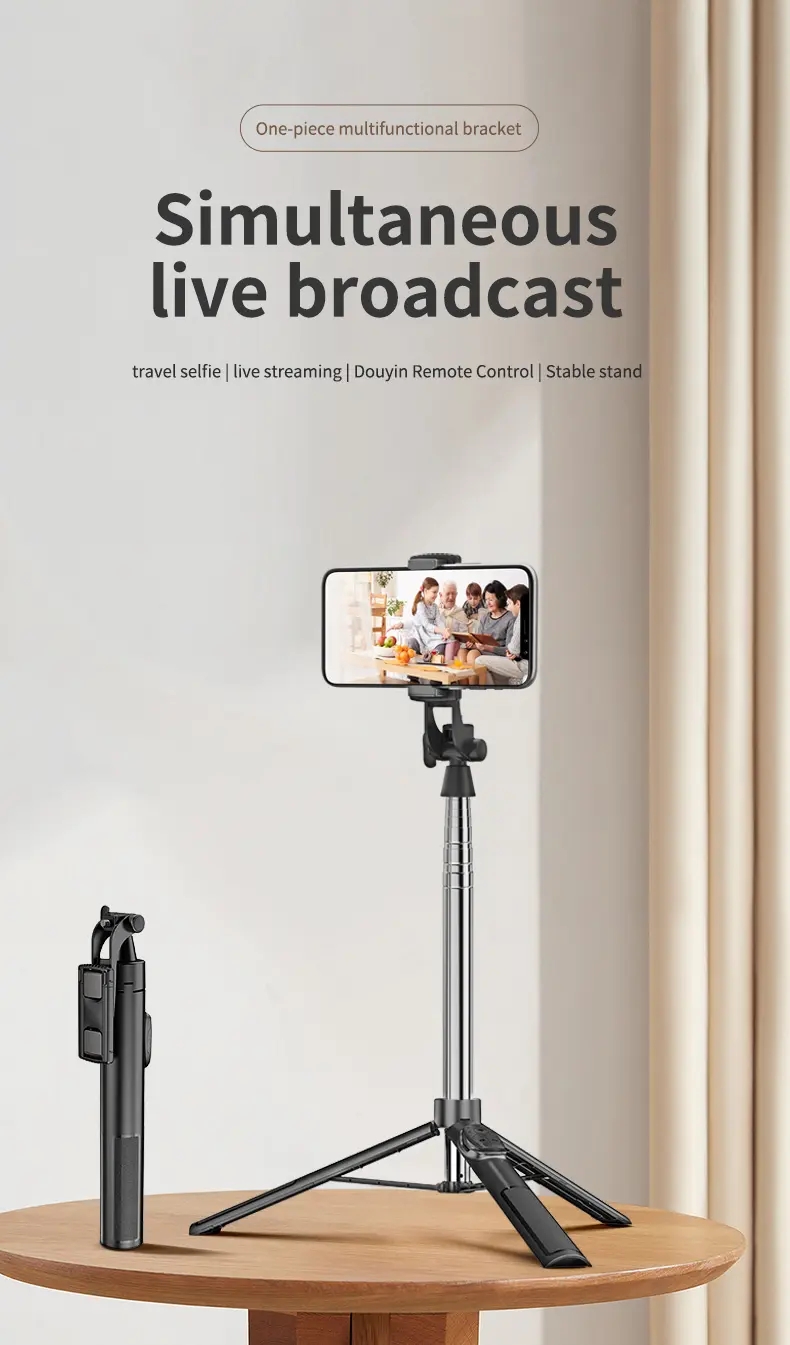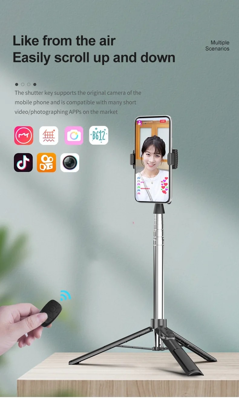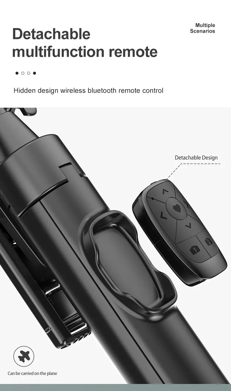 Additional Function | Foldable, Portable, 1/4 screwed joint, Bluetooth remote control, Tiktok ,multi-function remote control.Integrated Innovation Design, Adjustable Angle & Potable Phone Holder, Detachable Bluetooth Remote & Awesome Battery Life, Super Lightweight & Convenient to Carry Around, Simple to use & Universal for all smartphones |