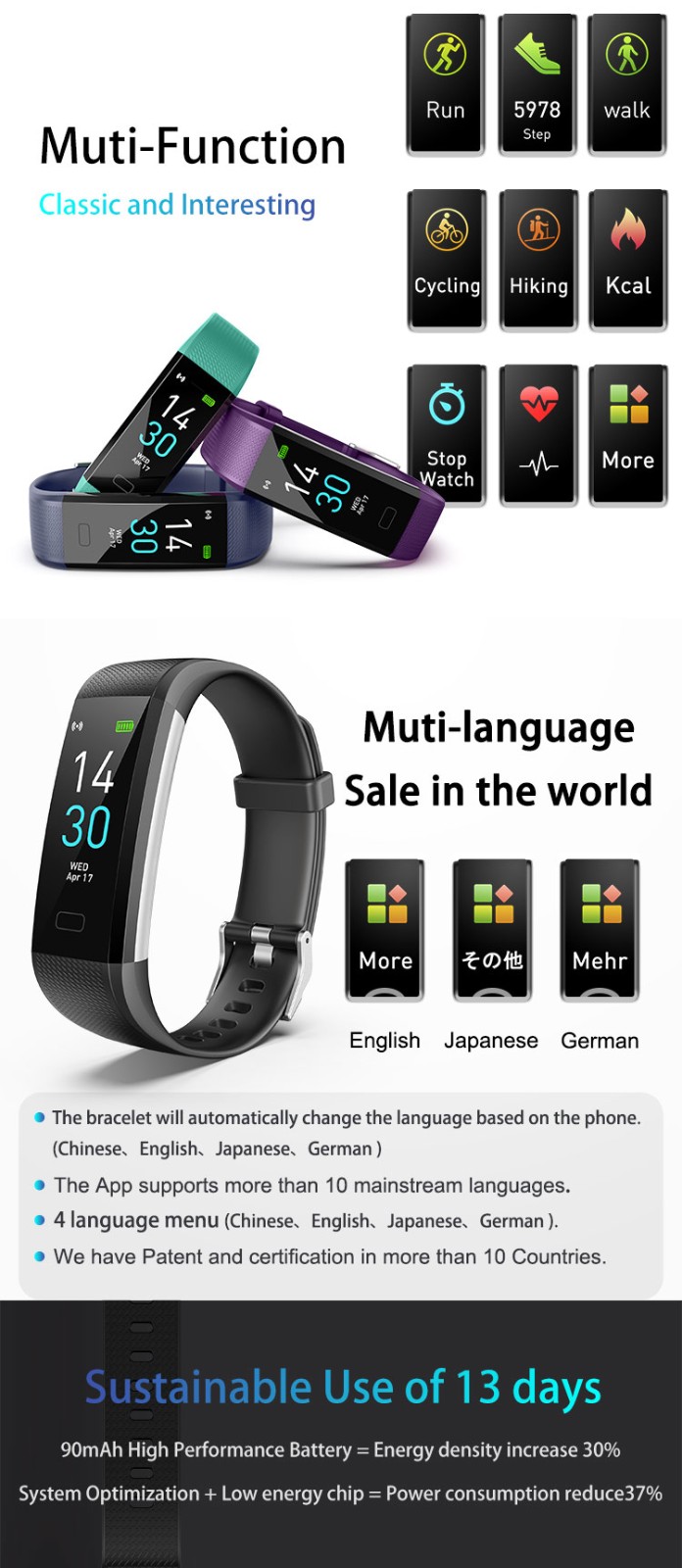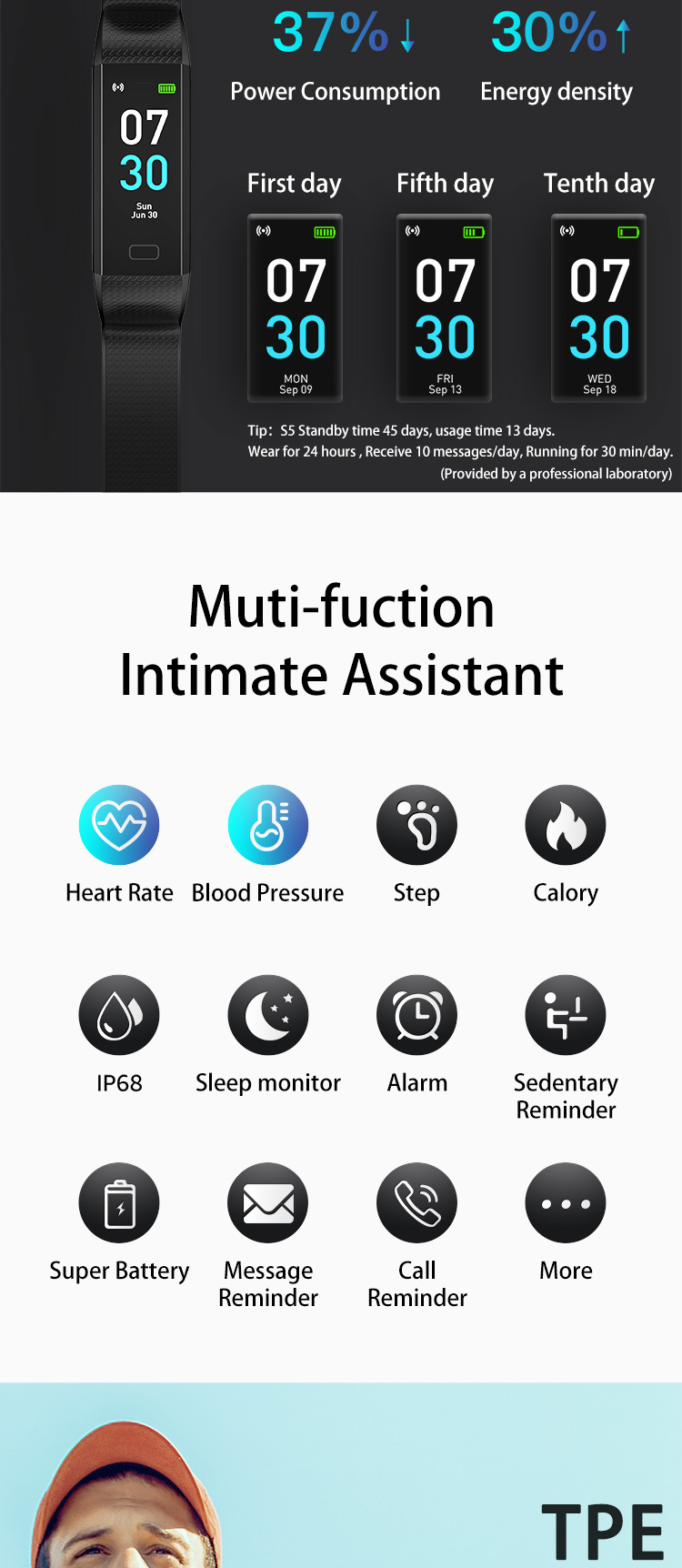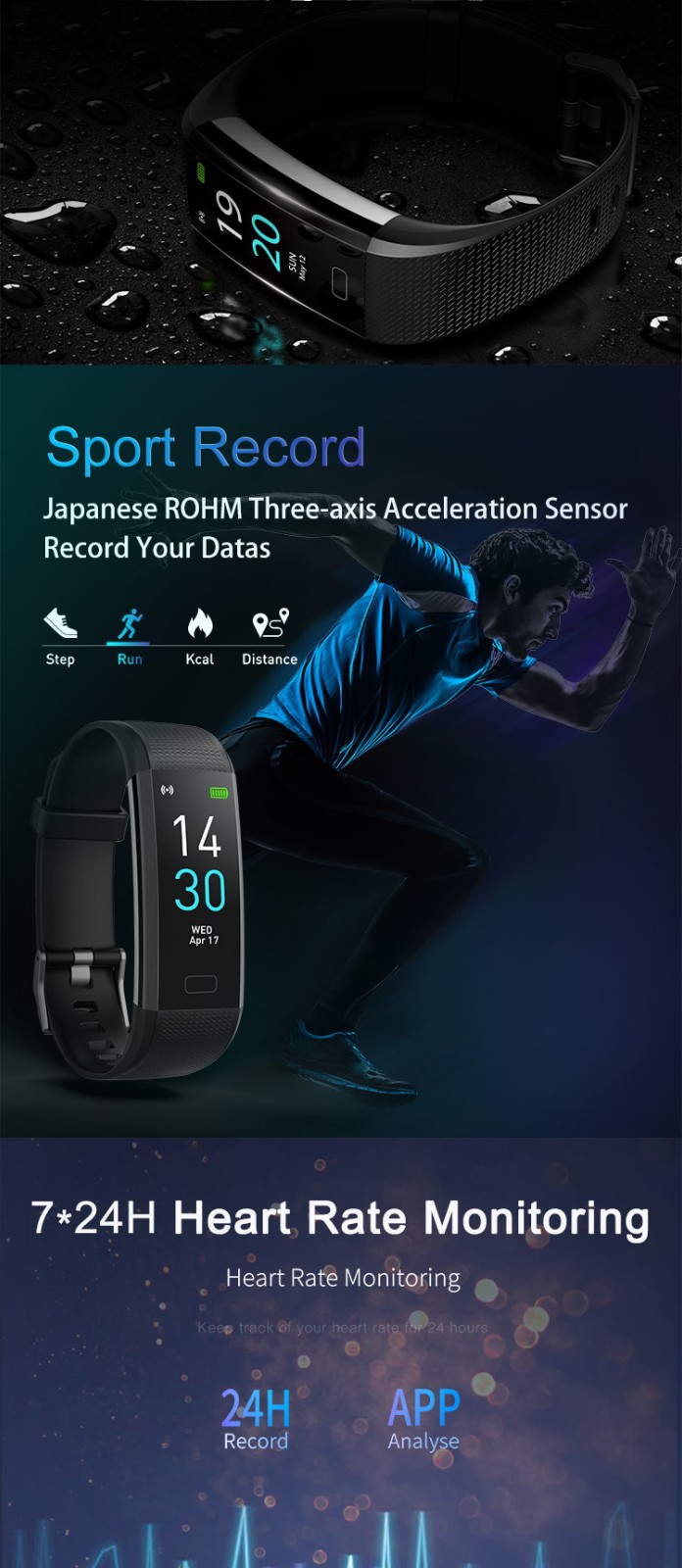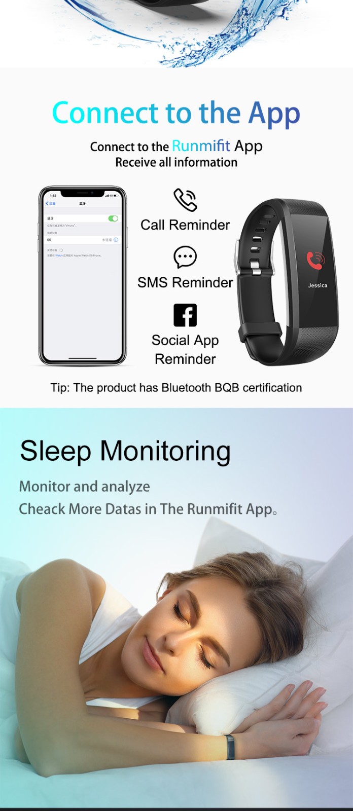 sleep monitoring, heart rate monitoring, blood pressure,step counting, calorie consumption, distance,16 sports modes