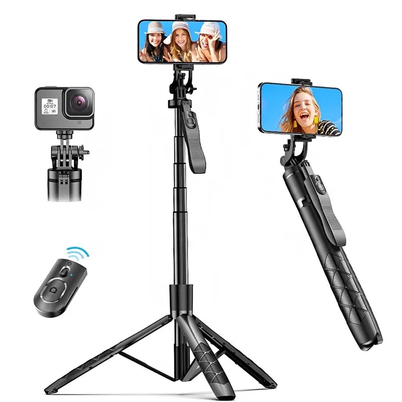 Mini Extendable 3 in 1 Aluminum Selfie Stick with Wireless Tiktok Remote and Tripod Stand for iPhones and Android smartphones.